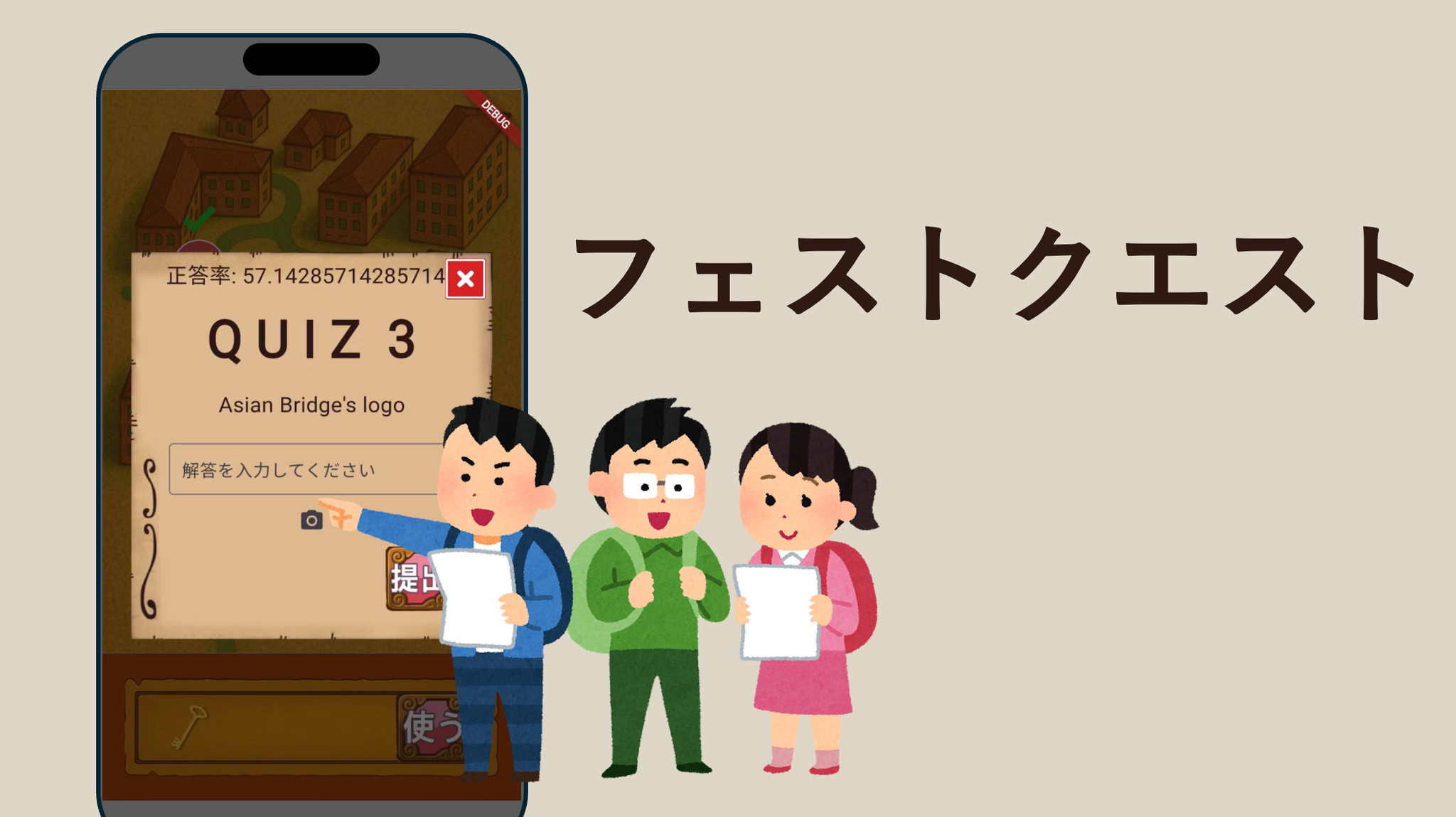 学園祭中をまわりながら謎をとき、宝を見つけるクイズラリー、フェストクエストを4人グループでハッカソンに参加したときに作成しました。謎解きをしながら文化祭を回れます!